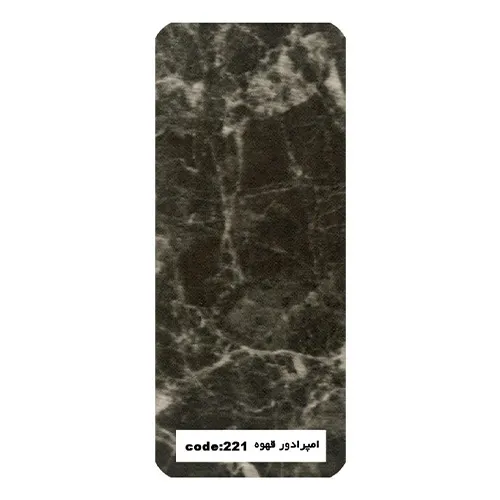 ورق PVC امپرادور قهوه کد 221، ترکیبی هنرمندانه از رنگ قهوهای تیره با رگههای طلایی و کرم است که یادآور سنگهای مرمر طبیعی گرانقیمت و لوکس